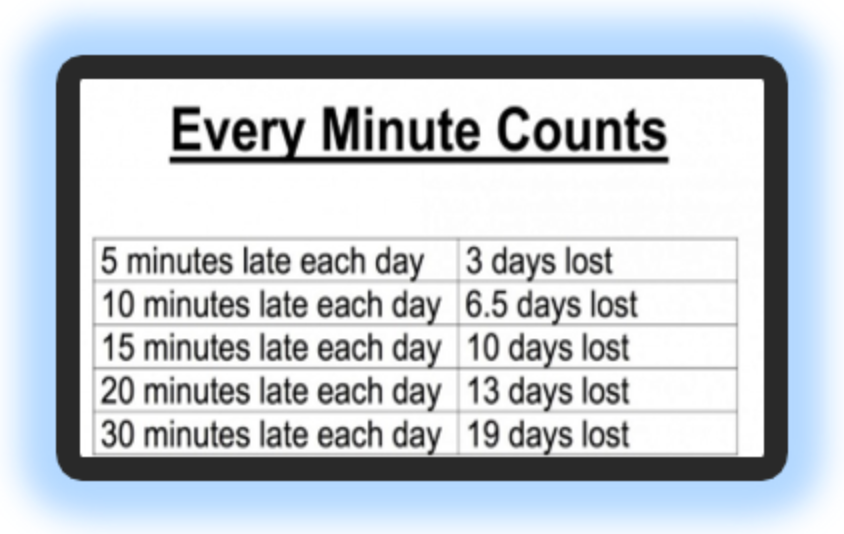 Everyone knows that good attendance and punctuality are essential for children to be successful in their education. Children only get one education and it is the parents' responsibility, along with the school, to ensure that every child attends every day.